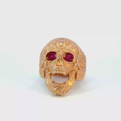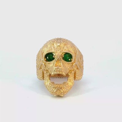 Yellow Gold Skull Ring with Emerald Eyes